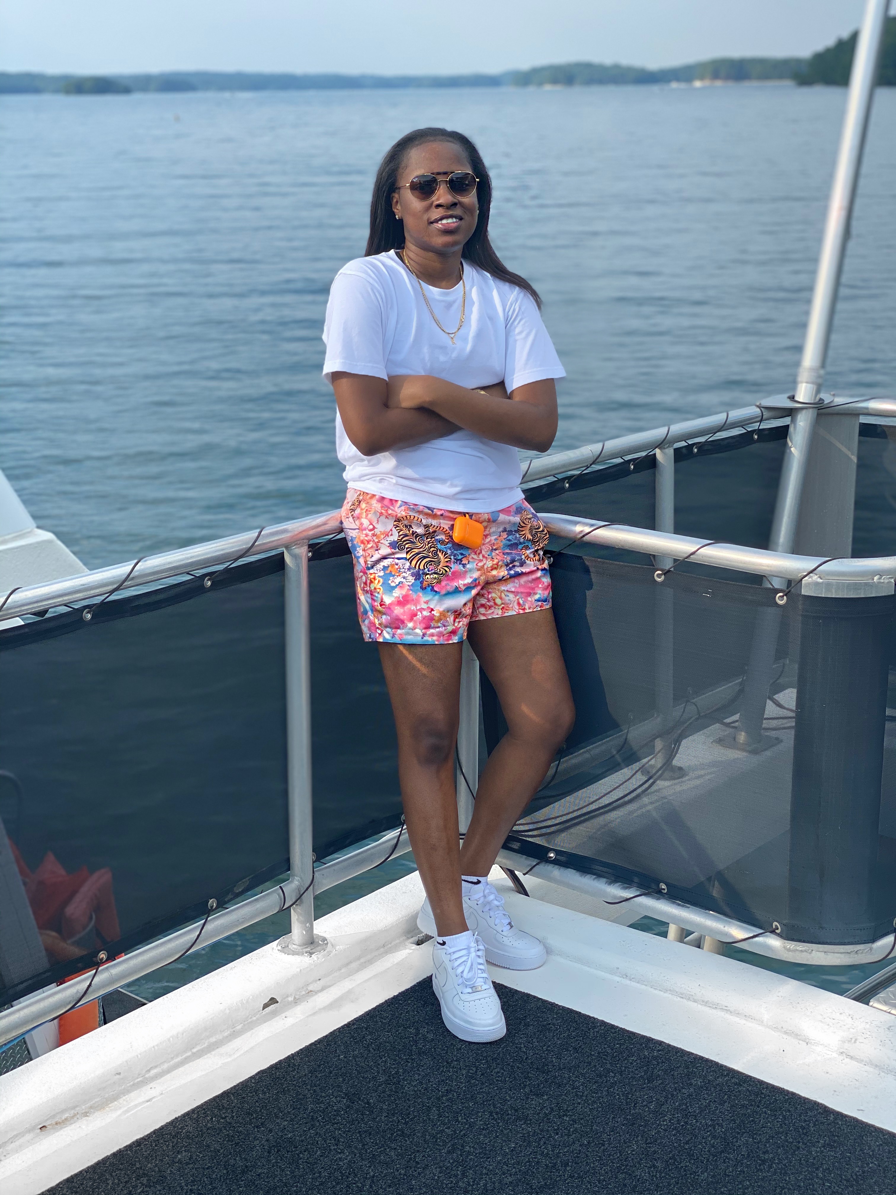 Hey everyone! Happy Friday! I can’t believe we are halfway through this crazy year. Now it’s hot and we are so limited on what we can do. If you read my last blog I said “vacation me!” and I meant that. I’ve had enough of North Carolina so, my friend and I decided to live life on the edge and go to ATL. Honestly, I’m cringing even writing this right now because we are crazy for even going, but we are both in great condition after our weekend trip. We were able to attend some events in ATL and go to the lake where I had such an amazing time at this boat party. I was able to meet so many great people and hang out with some old friends. I received a lot of DMs on Instagram asking about where I got my swim shorts from that I wore on the boat ride and will add some links below for anyone interested.